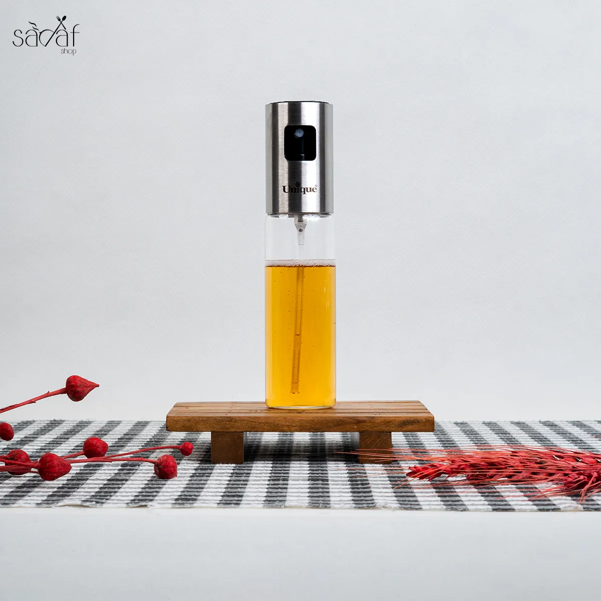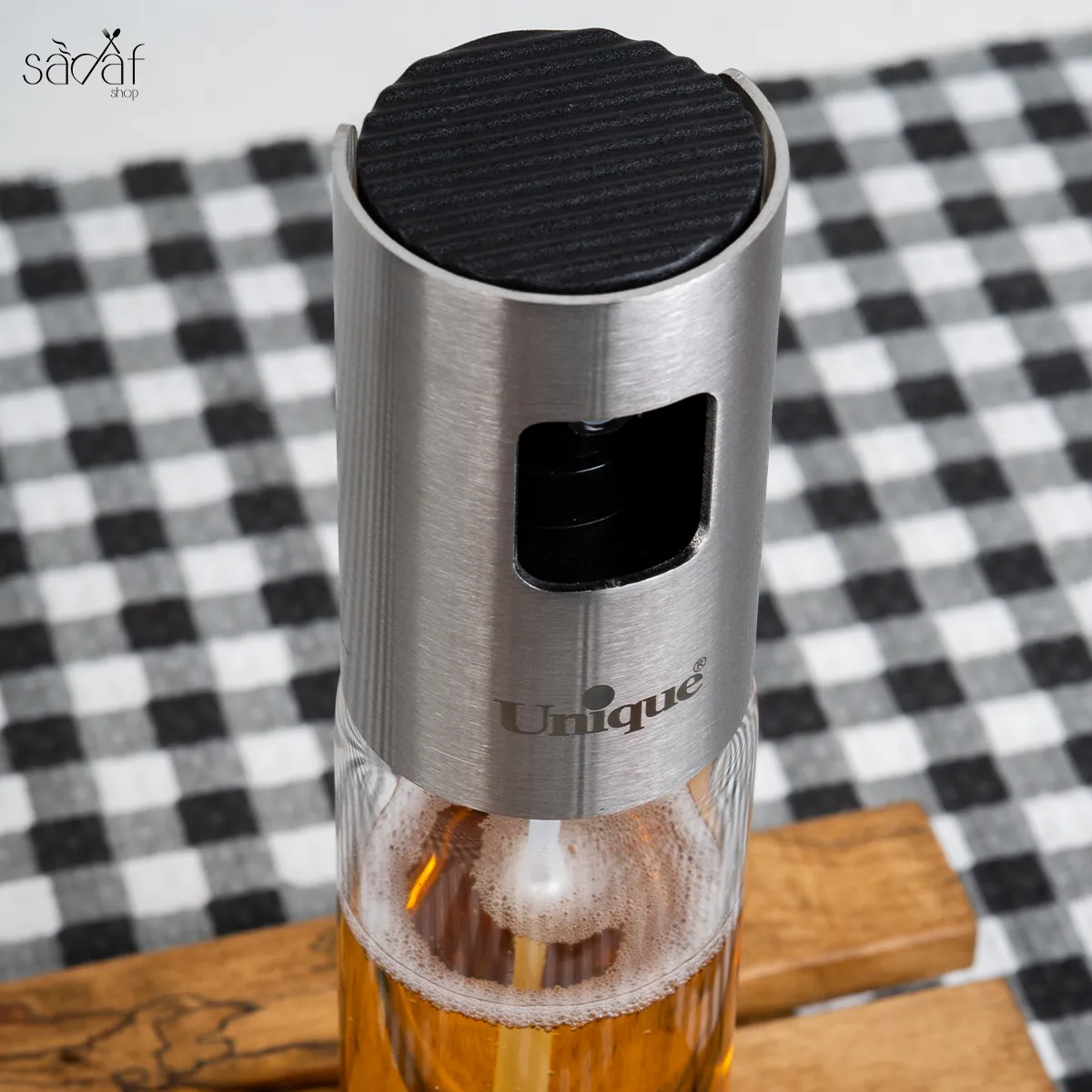 آشپزی سالم و کم روغن مستلزم داشتن وسایلی خاص است. یکی از این وسایل ضروری که به پخش بهتر روغن و در نتیجه مصرف کمتر آن می انجامد اسپری روغن است. “اسپری روغن یونیک محصولی زیبا و با کیفیت از شرکت نام آشنای یونیک است. درپوش این محصول از استیل ضد زنگ و برنه آن از شیشه ساخته شده. علاوه بر روغن میتوانید از این وسیله برای اسپری دیگر مایعات بر روی مواد غذایی استفاده کنید.