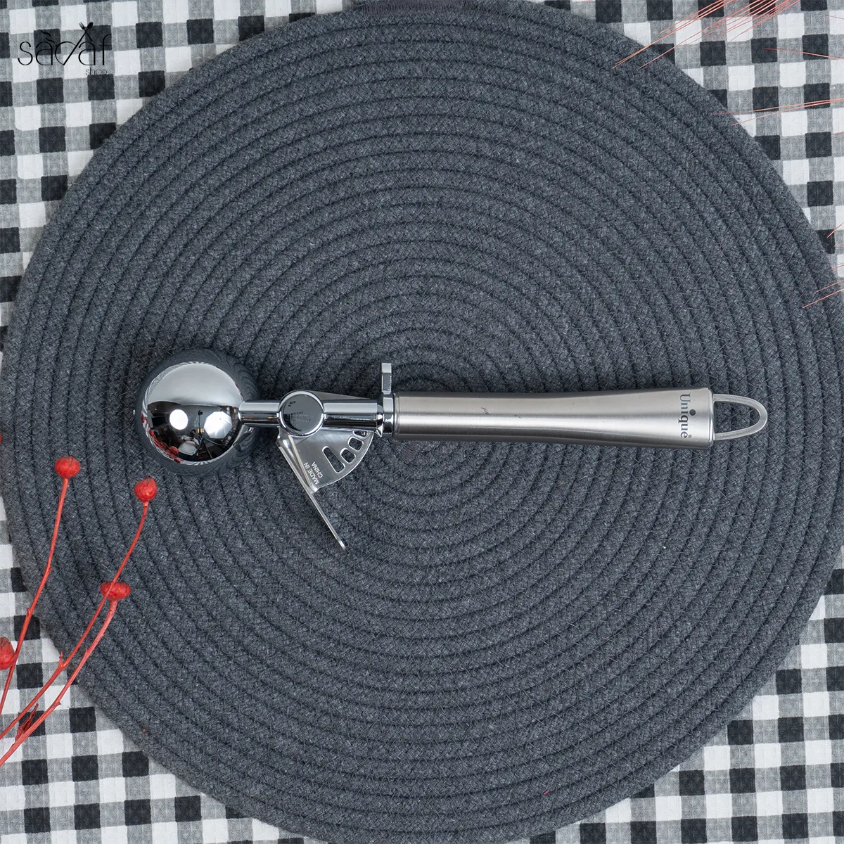 اسکوپ بستنی استیل فنر دار، ابزار ایدهآلی برای سرو بستنی و دسرهای یخزده است. به شما این امکان را میدهد تا اسکوپهای یکسان و دقیق از مواد مختلف تهیه کنید. این اسکوپ دارای قاشق توپی شکل و یک اهرم خاص است که به راحتی مواد را از داخل خود خارج کرده و هر بار اسکوپهای دقیقی از بستنی یا دیگر دسرها به شما میدهد. طراحی دسته این اسکوپ به گونهای است که استفاده از آن بدون فشار اضافی و تنها با فشار دست، اسکوپهایی هم اندازه و یکسان را تولید میکند.