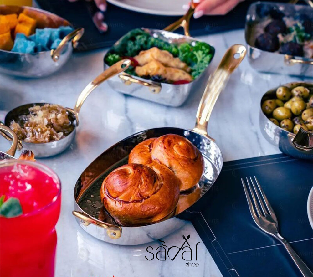 تابه های استیل چکشی با طراحی مدرن و ظاهری براق و دسته ی برنجی، انتخابی عالی برای سرو انواع تنقلات و مزه،پیش غذا و… هستند.