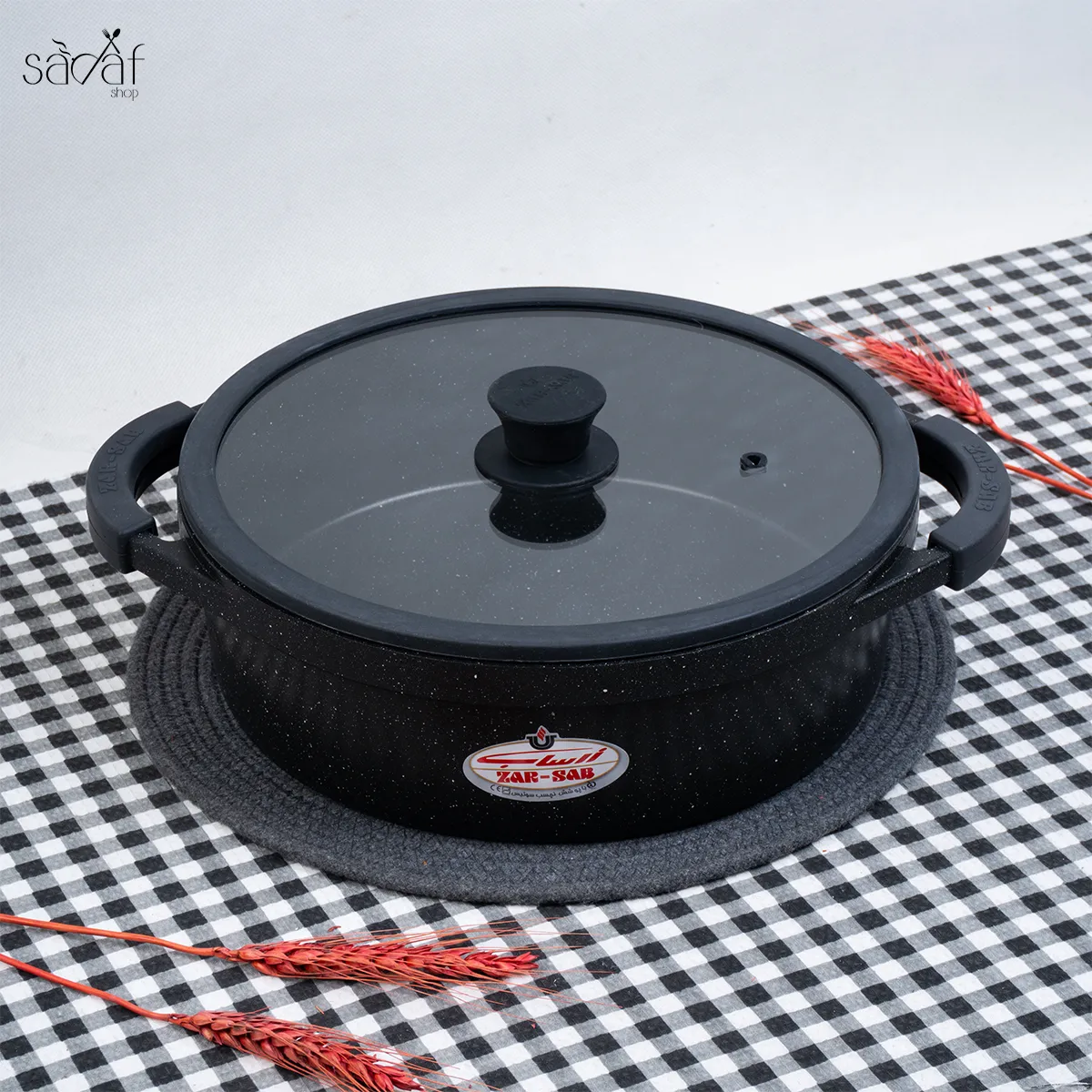 ویژگی های تابه دو دسته درب دار ۲۸ سانت مونارک پلاس مشکی زرساب