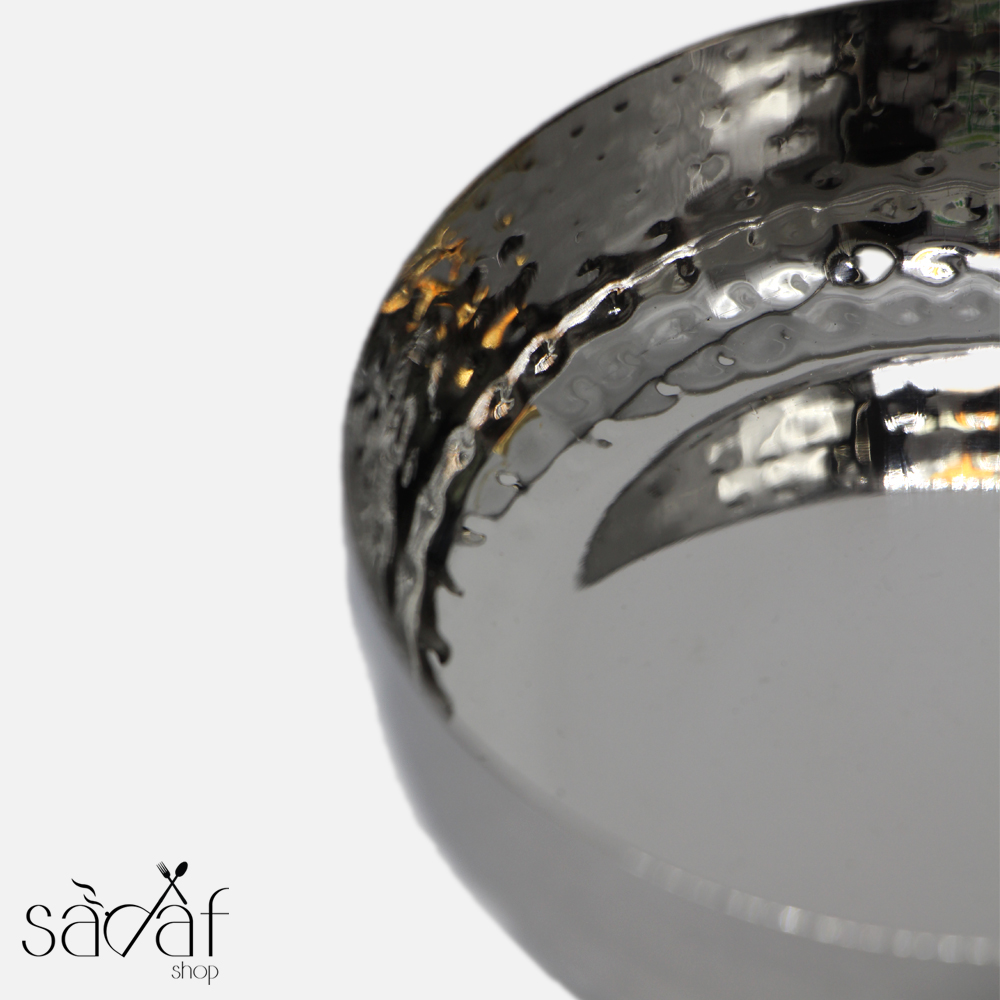 ظرف های استیل چکشی با طراحی مدرن و ظاهری براق و دسته ی برنجی، انتخابی عالی برای سرو انواع غذاهای خاص، سرو انواع مزه، پیش غذا هستند.