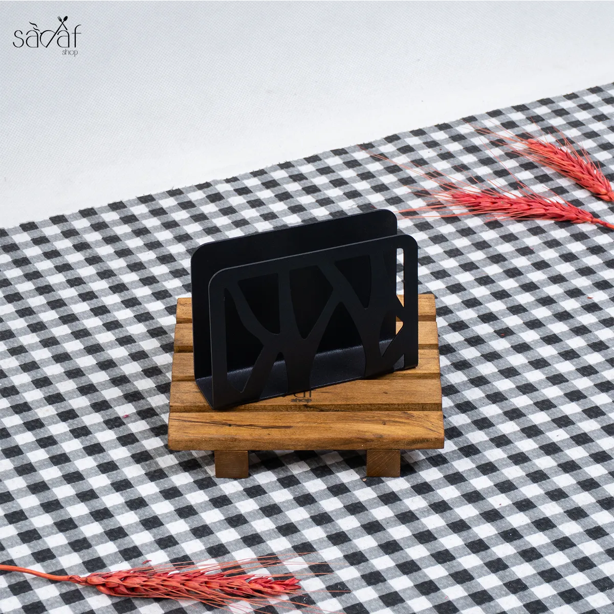 جای دستمال کاغذی طرح هلالی مشکی فلزی، گزینهای شیک و کاربردی برای نگهداری دستمال کاغذی بر روی میز شماست.