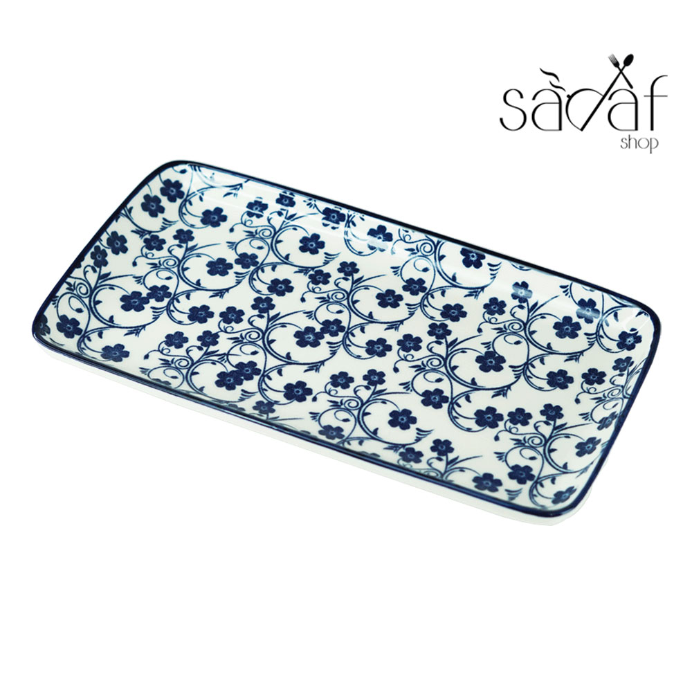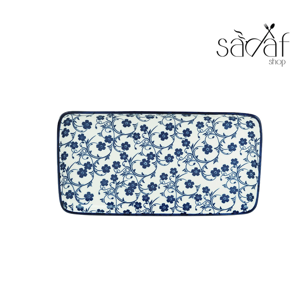 رولت مستطیل بزرگ سرامیک ۲۳/۱۲ سانت طرح گل آبی دنی هوم