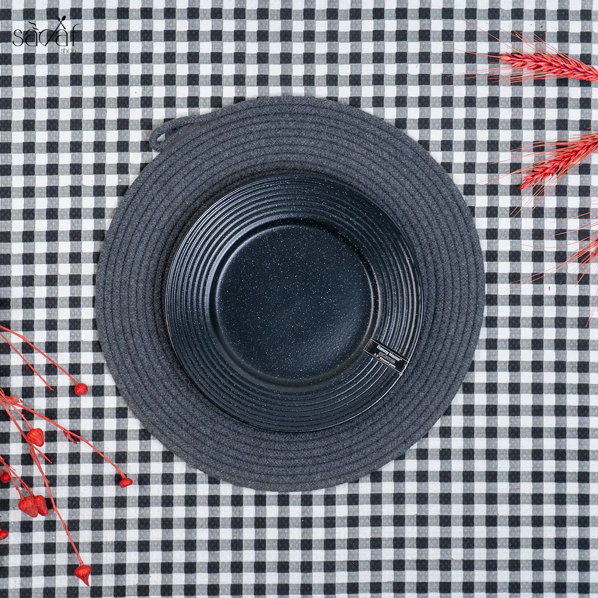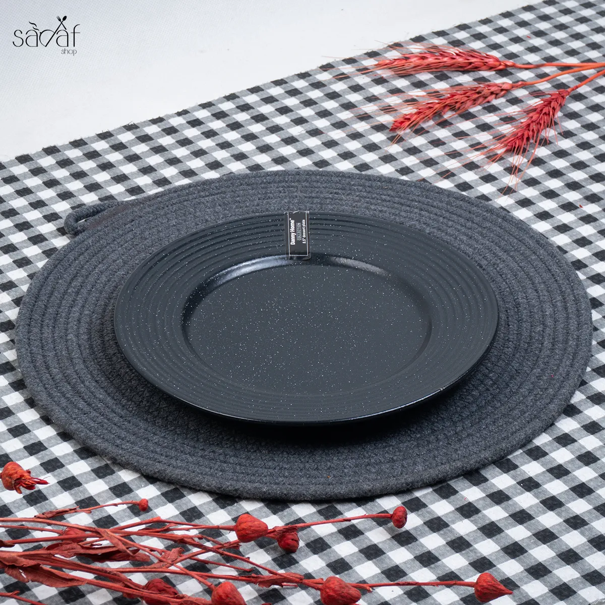 زیر دستی تخت ۲۲ سانت سرامیک مشکی شیاردار دنی هوم