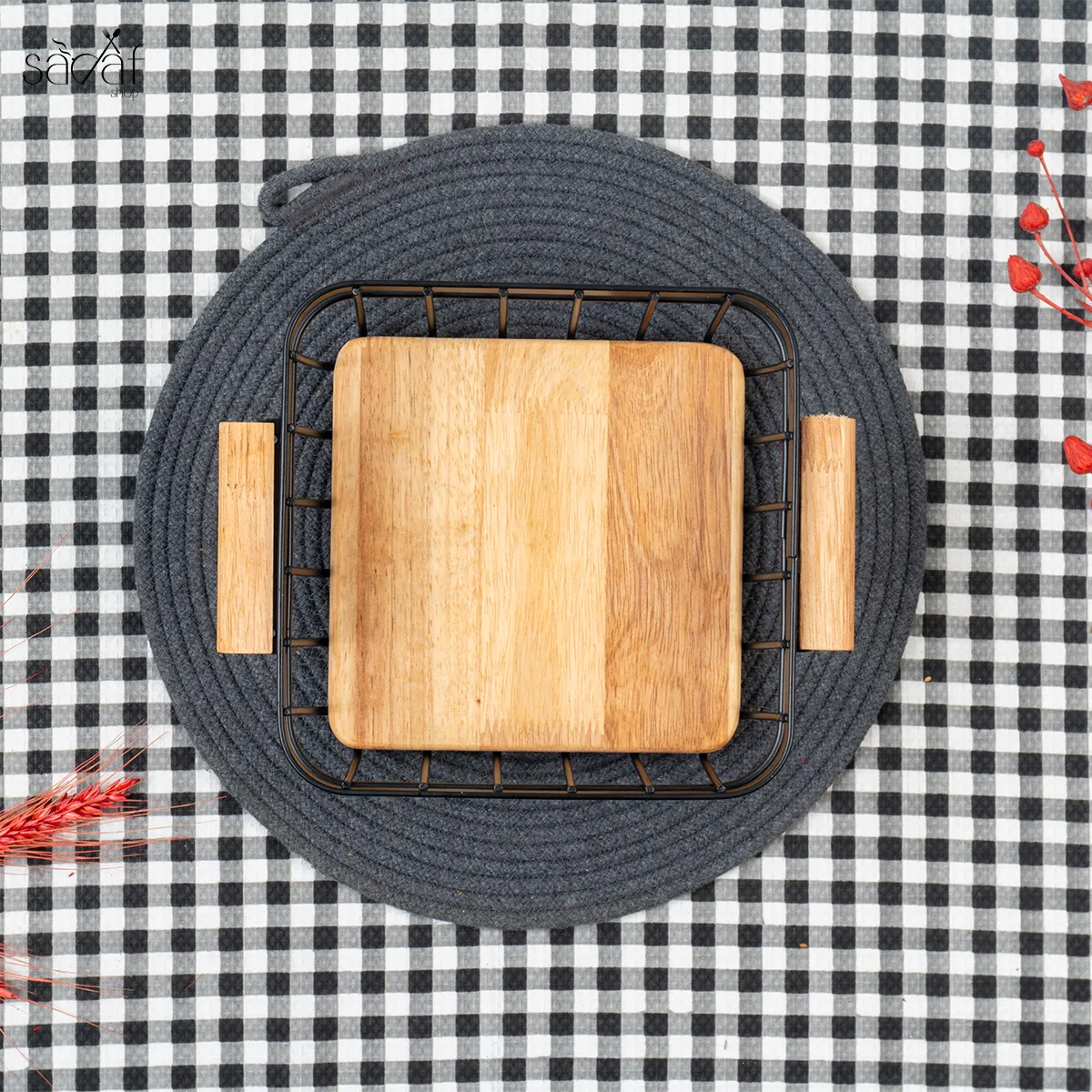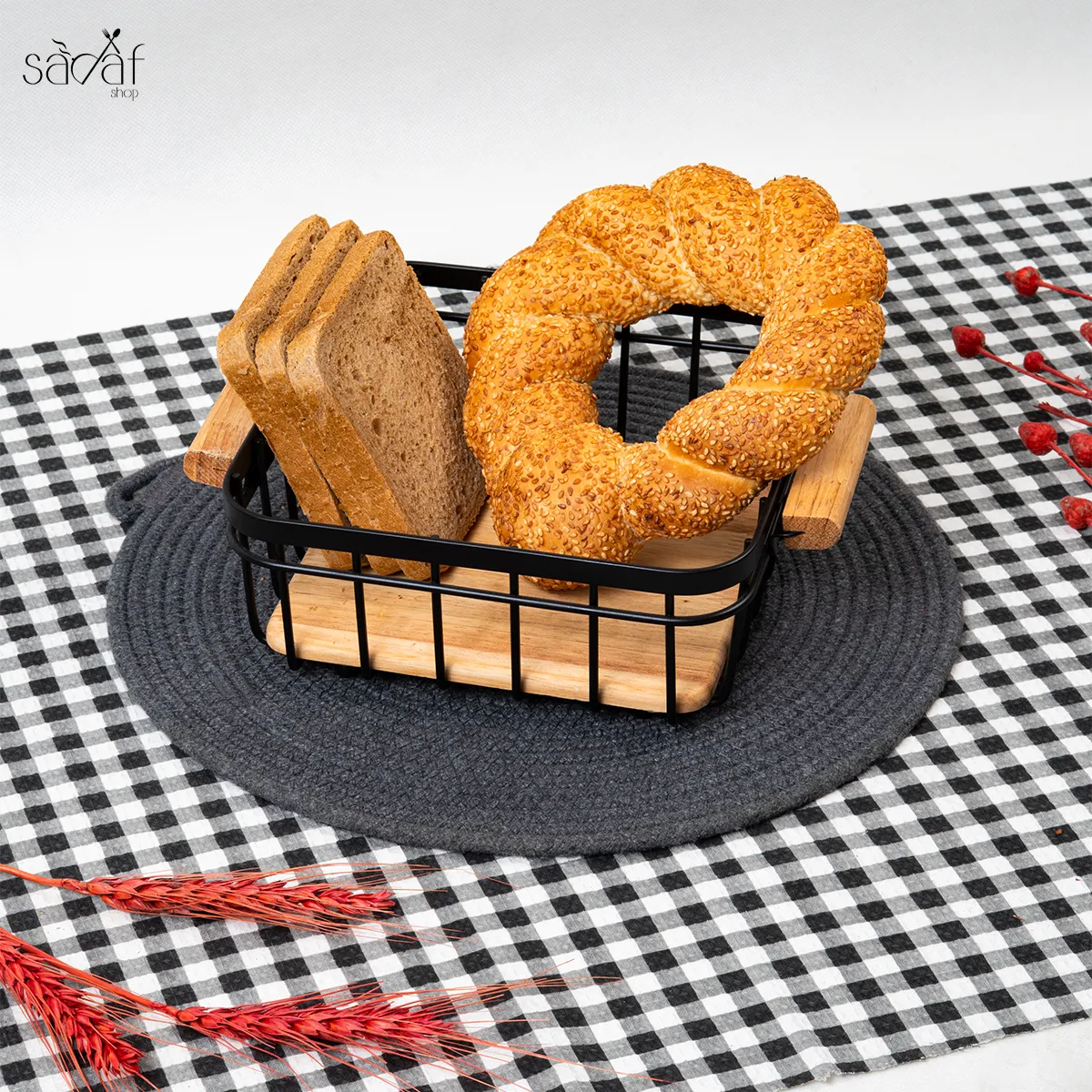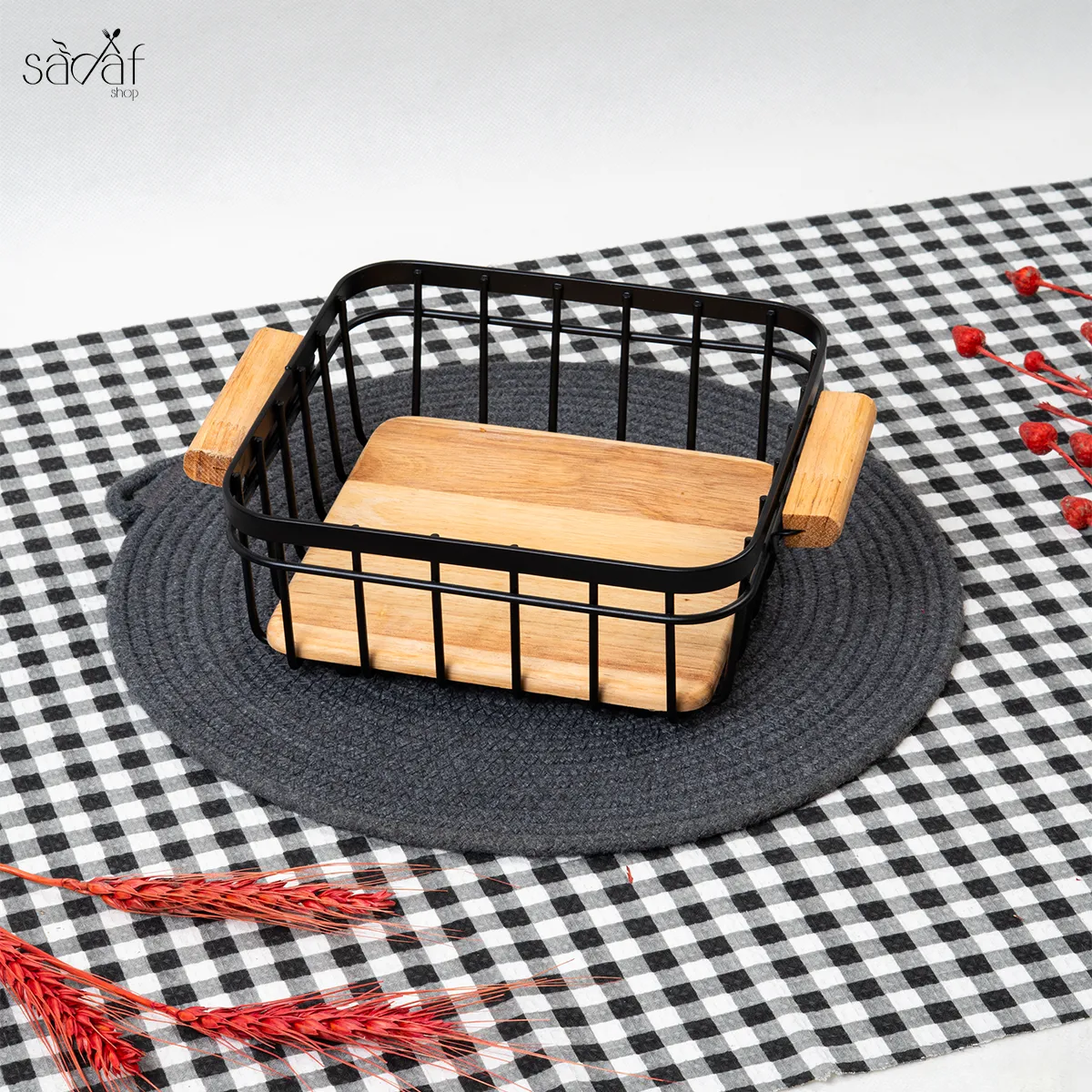 سبدنان چوبی فلزی مربع یونیک