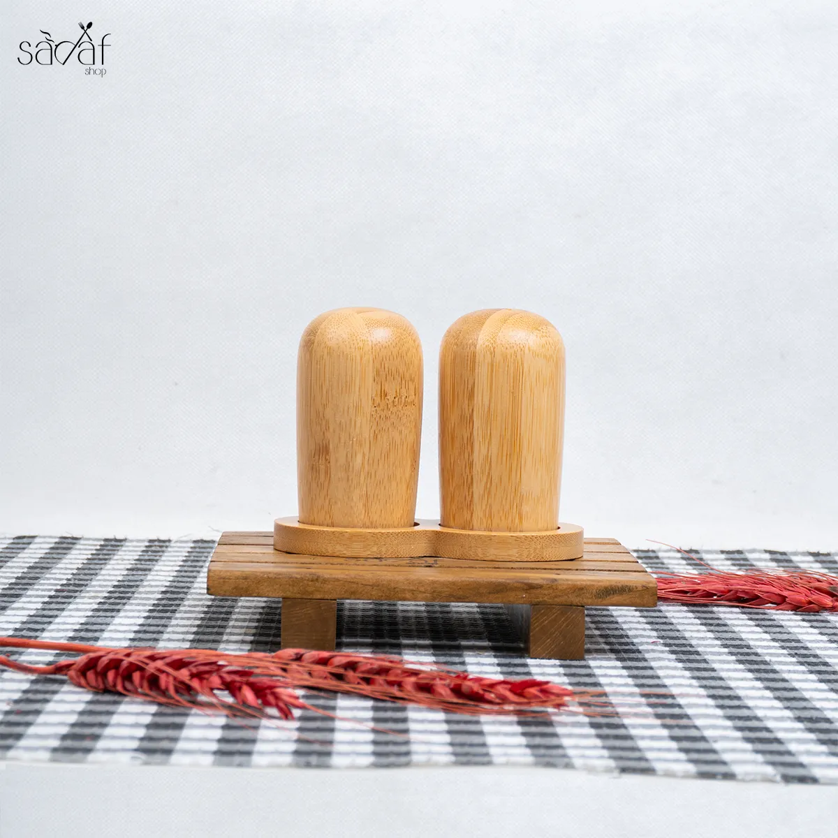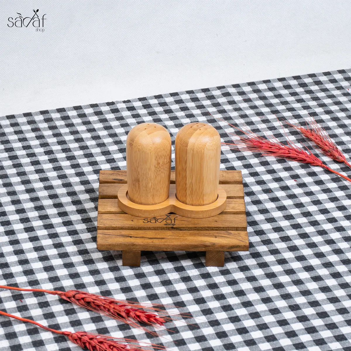 ست نمکدان جفتی بیضی تمام بامبو(یک عددی)