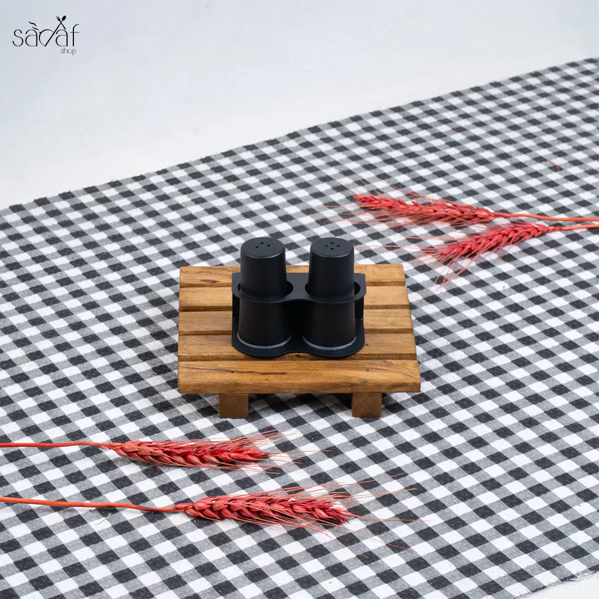 ست نمکدان فلزی مشکی دو تایی استند دار صدف