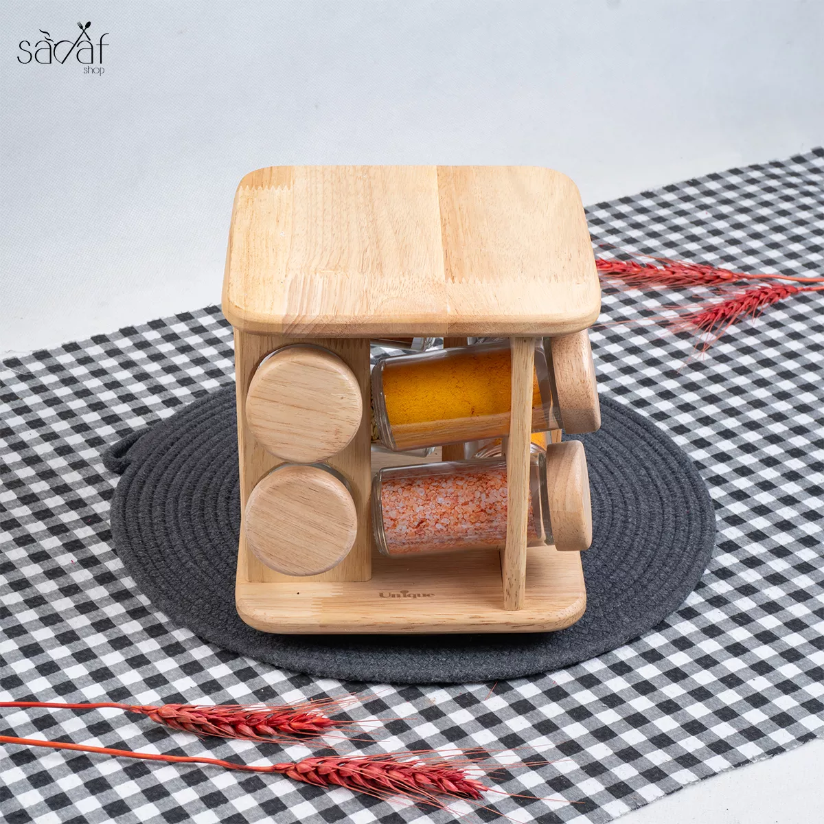 سرویس ادویه چوب،شیشه گردان یونیک (۸ عددی)