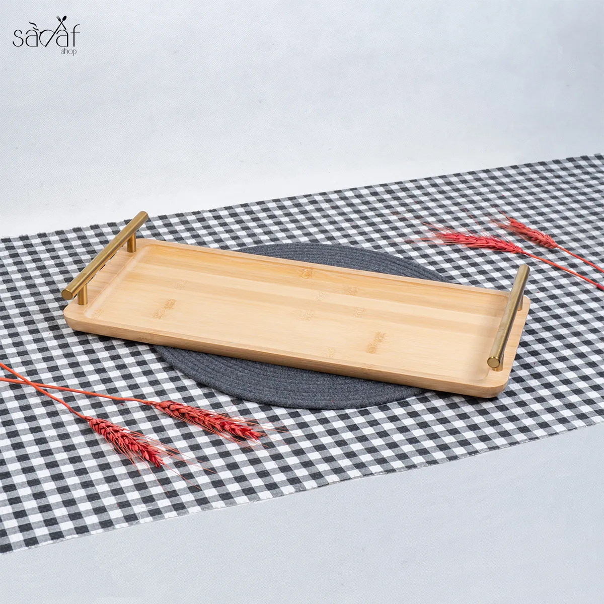 ویژگی های سینی مستطیل بامبو دسته طلایی
