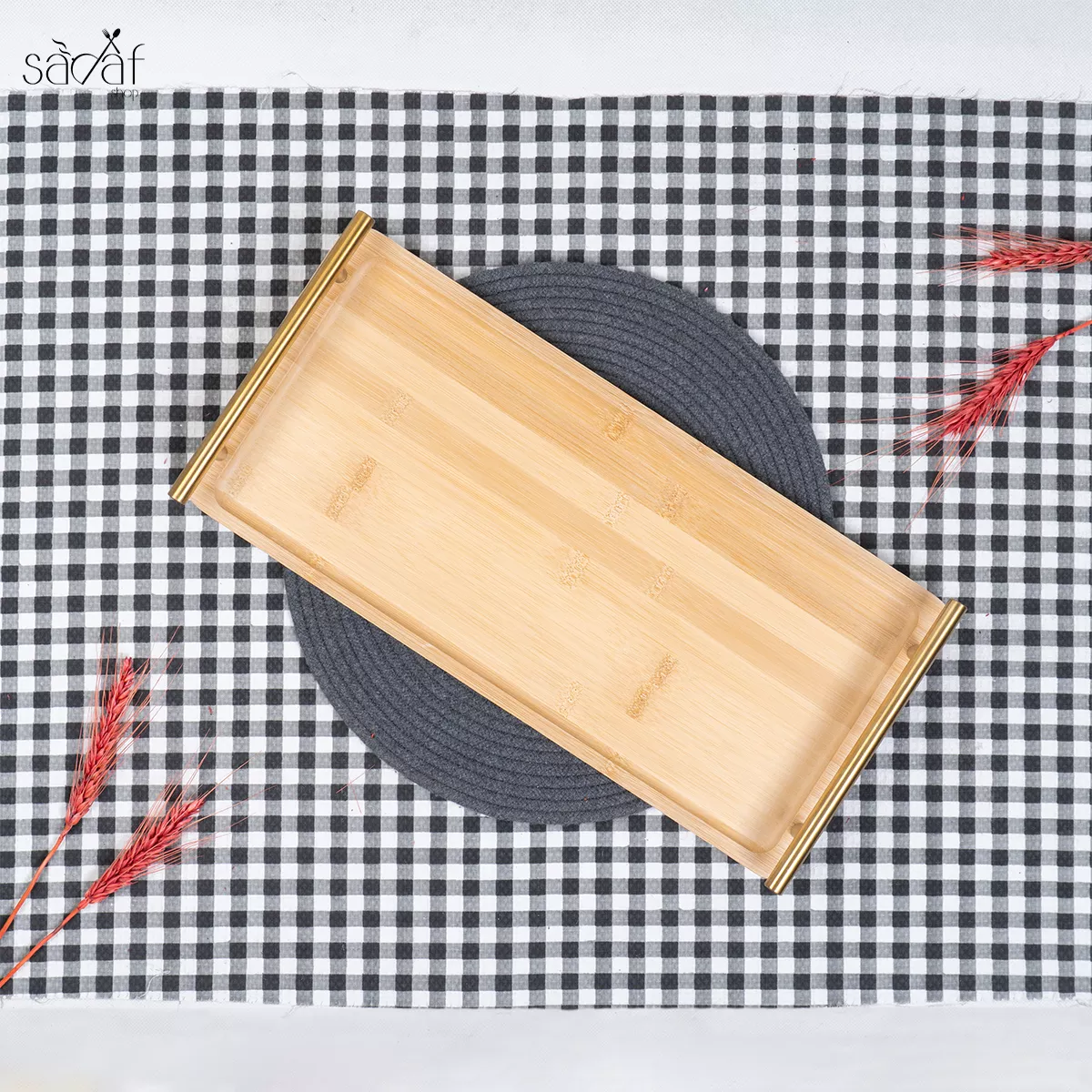 سینی مستطیل بامبو ۴۳/۲۰ سانت دسته طلایی