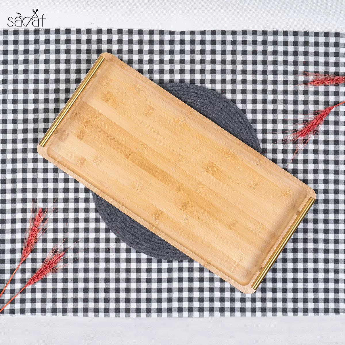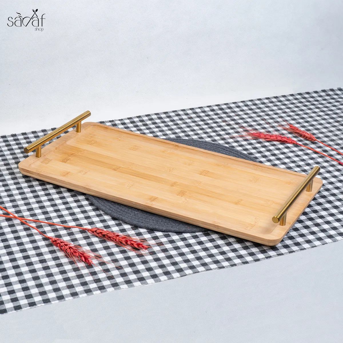 سینی مستطیل بامبو ۴۸/۲۴ سانت دسته طلایی