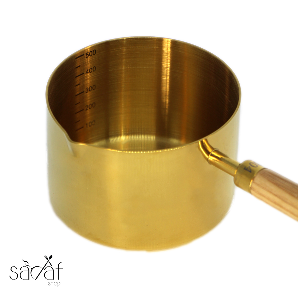 ظرف سرو شیر استیل طلایی ۵۰۰ سی سی دسته چوبی (یک عددی)
