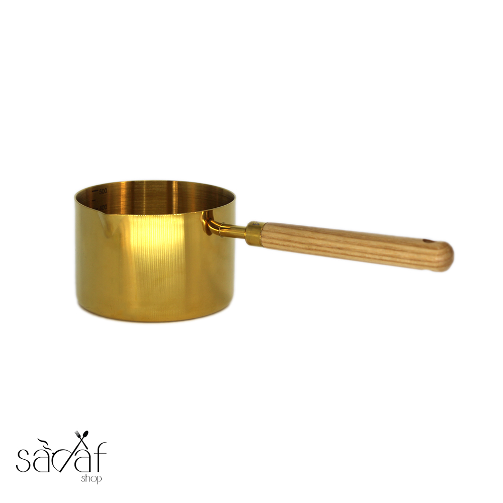 ظرف سرو شیر استیل طلایی ۵۰۰ سی سی دسته چوبی