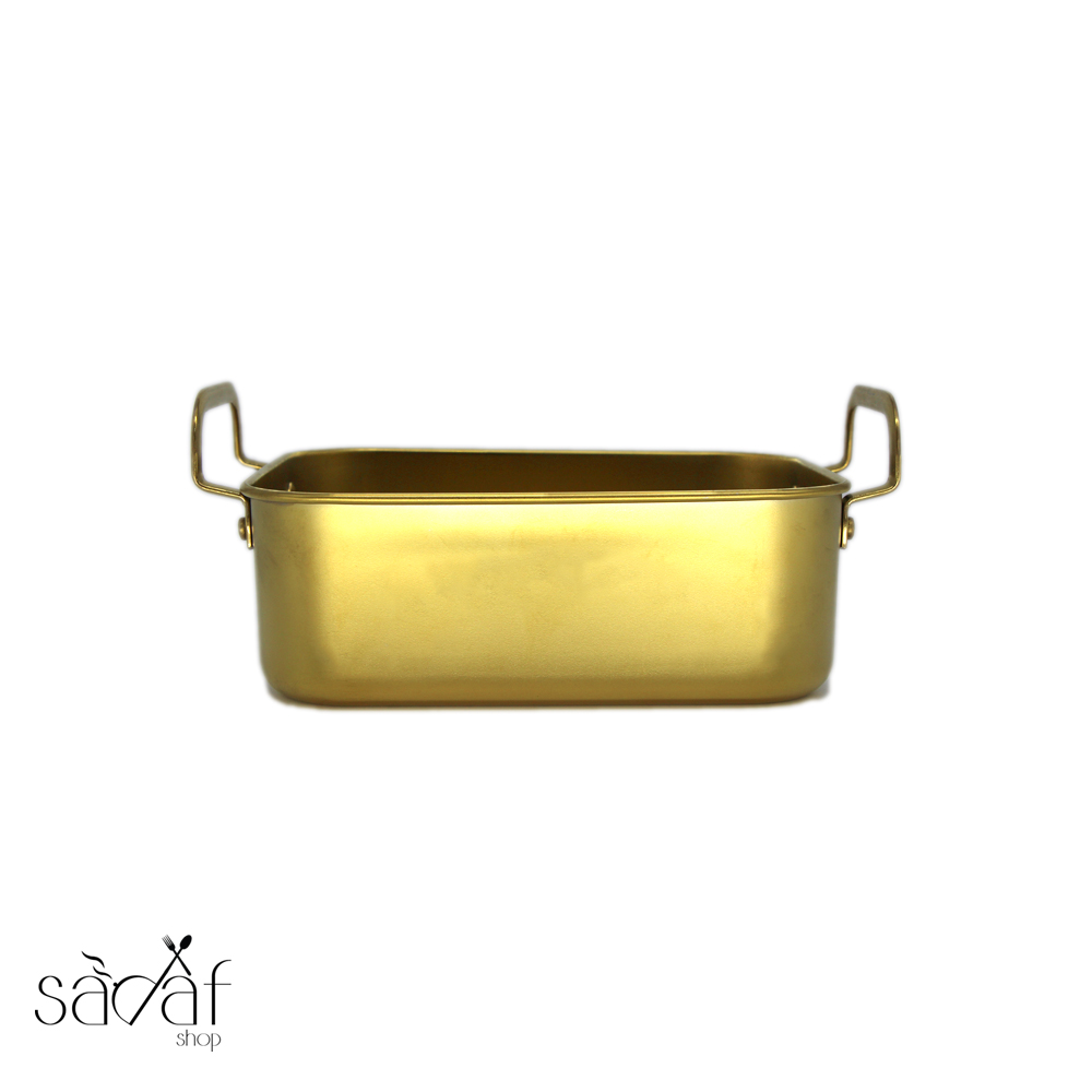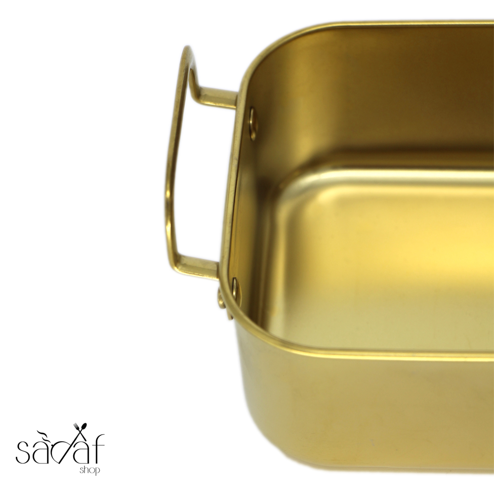 ظرف استیل طلایی مستطیل دسته دار ۱۴/۱۸