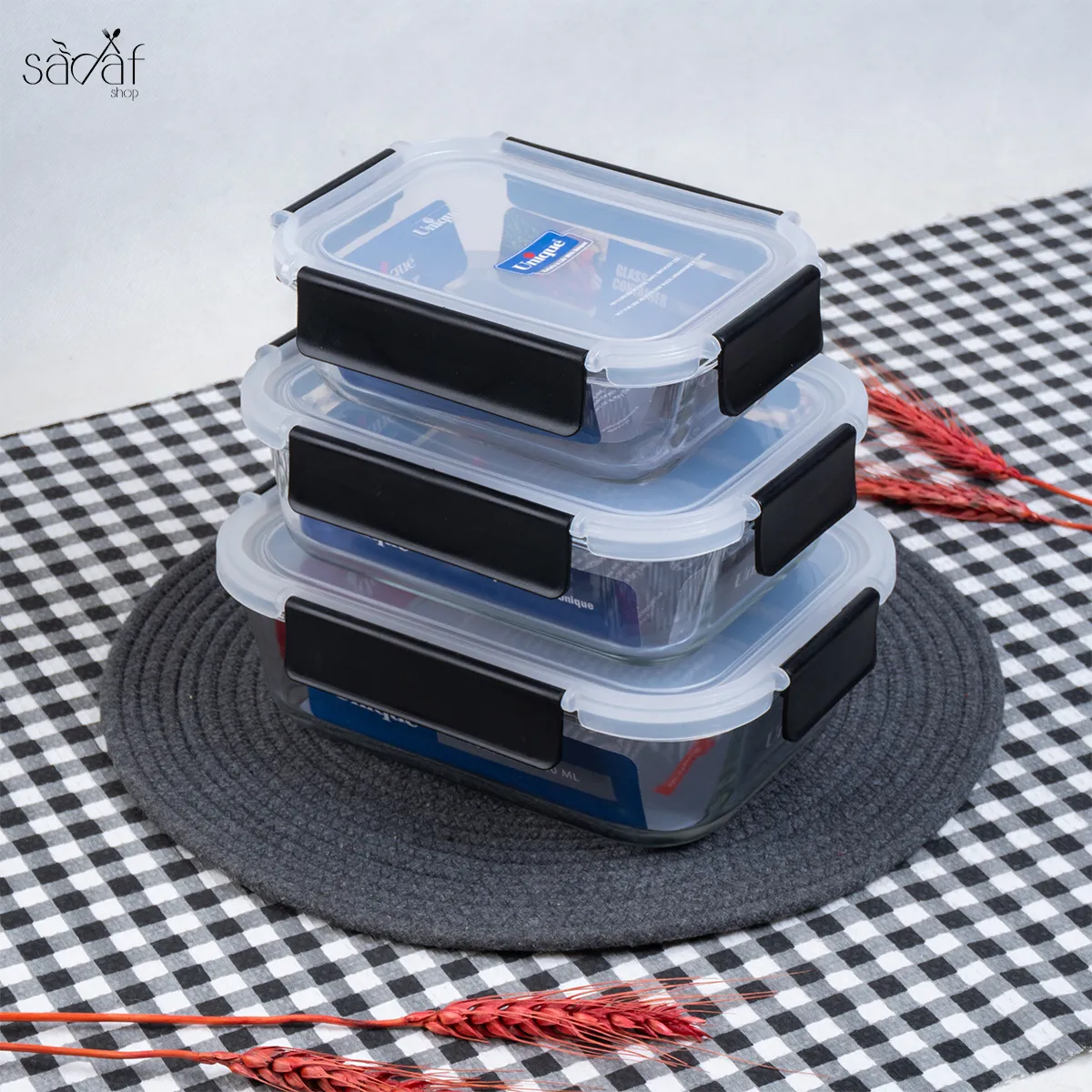 ظرف سه تیکه شیشه ای فریزری/ ماکروویو درب کلیپسی یونیک (ست۳ عددی)