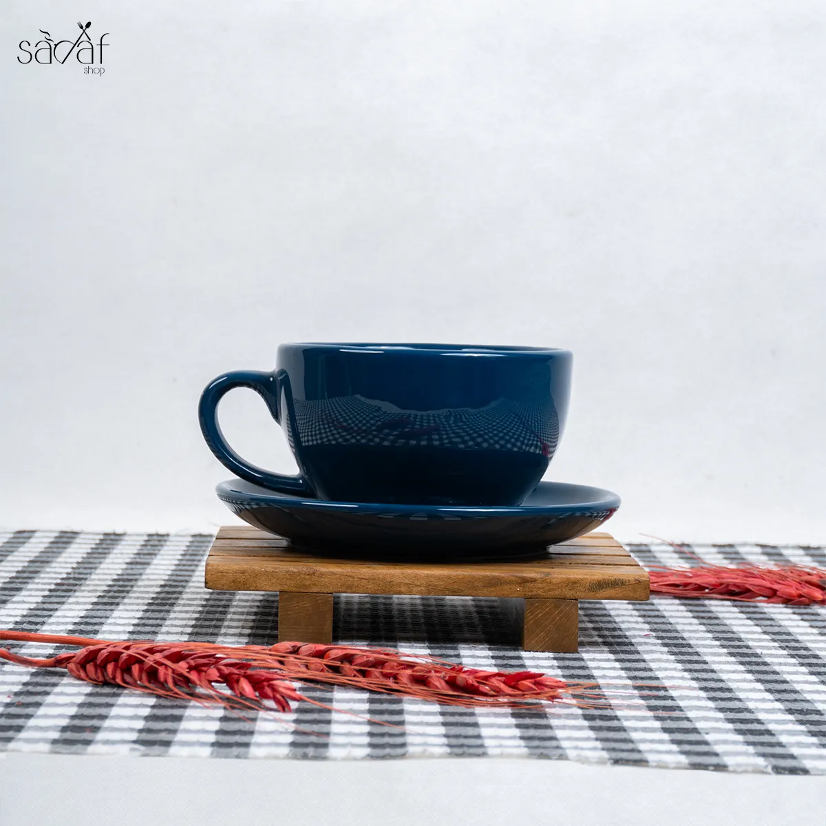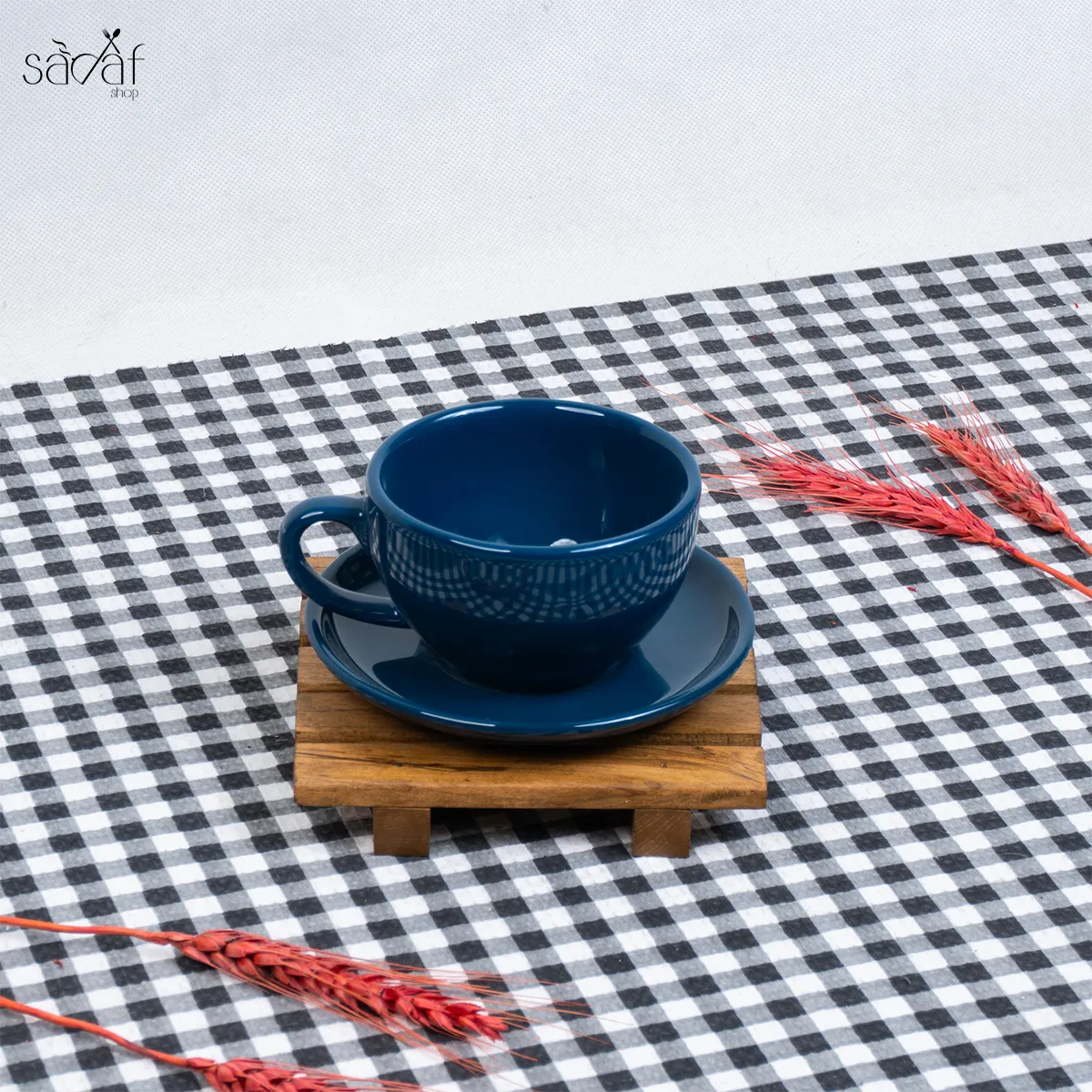 فنجان و نعلبکی سرامیک ۲۸۰ سی سی آبی کله غازی صدف (یک عددی)