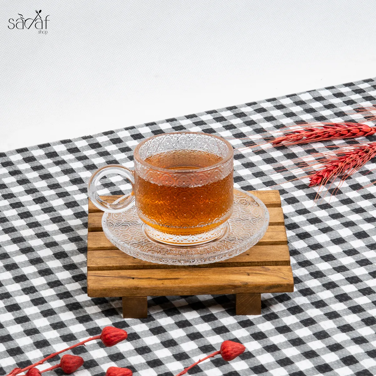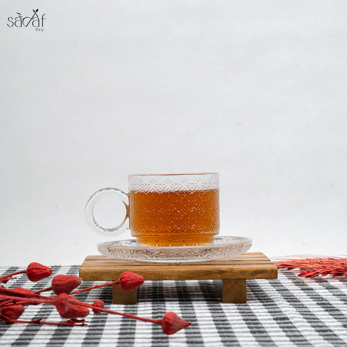 این محصول دارای طراحی منحصر به فرد و زیبا می باشد . این فنجان و نعلبکی ها از بلور شفاف و طرح دار با کیفیت ساخته شده است . این فنجان ها دارای دسته ای محکم و مقاوم هستند که همین دسته دار بودن فنجان باعث شده به راحتی بدون تماس دست به سطح داغ فنجان قادر باشید آن را جا به جا کنید این فنجان و نعلبکی ها از مقاومت بالایی برخوردار هستند.