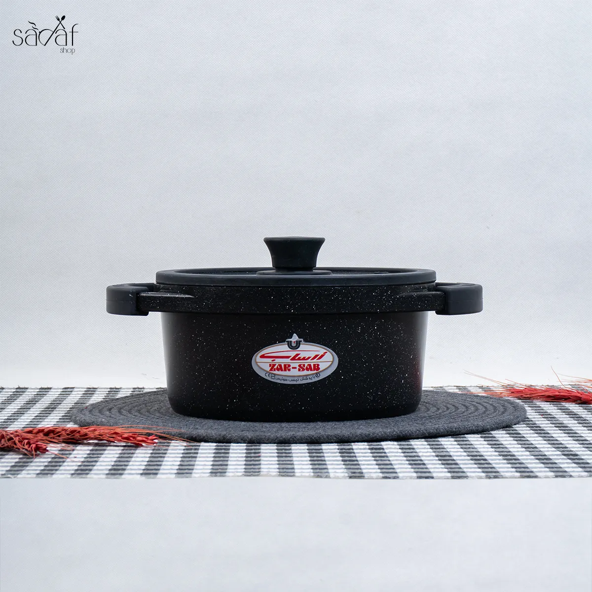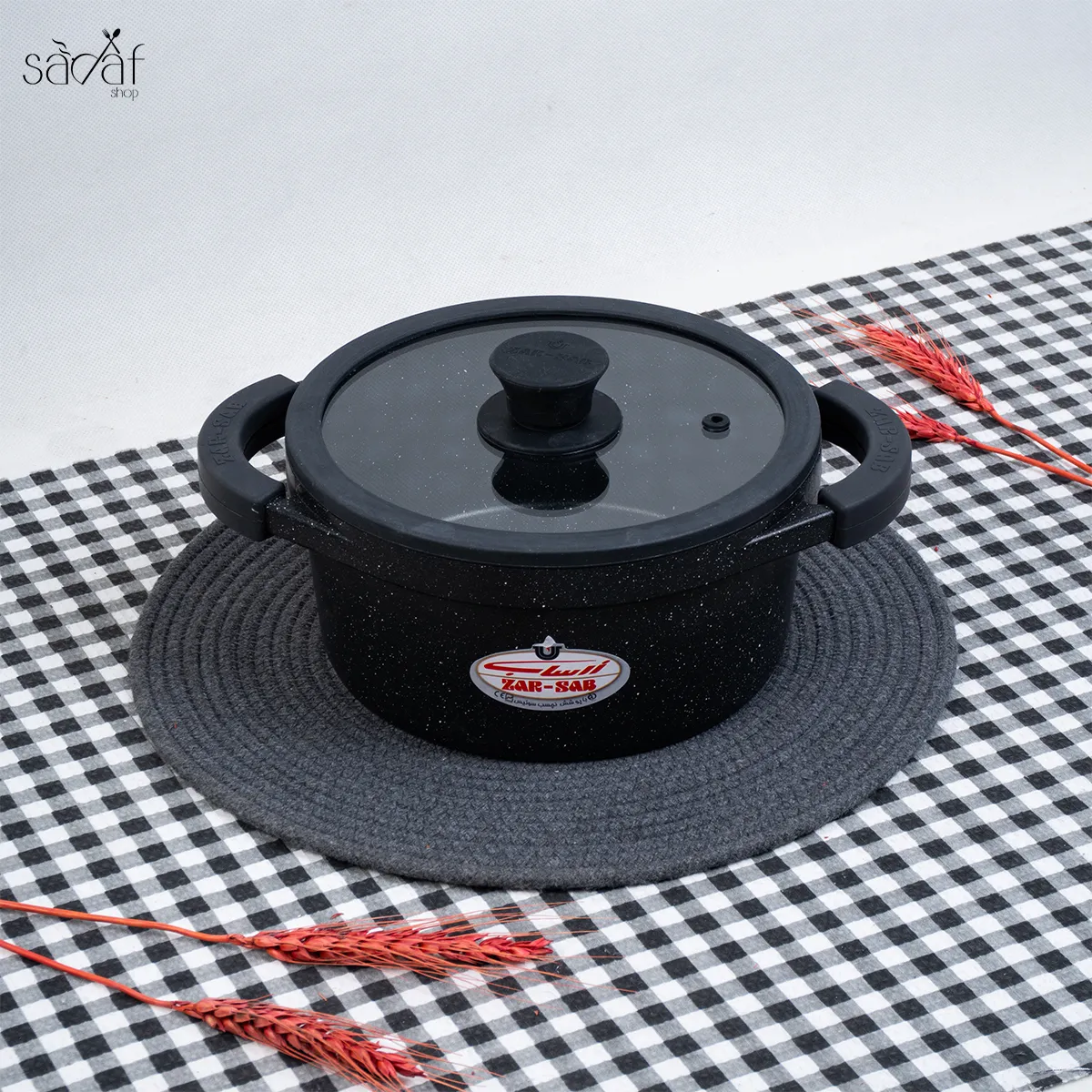 ویژگی های قابلمه دو دسته درب دار ۲۰ سانت مونارک پلاس مشکی زرساب