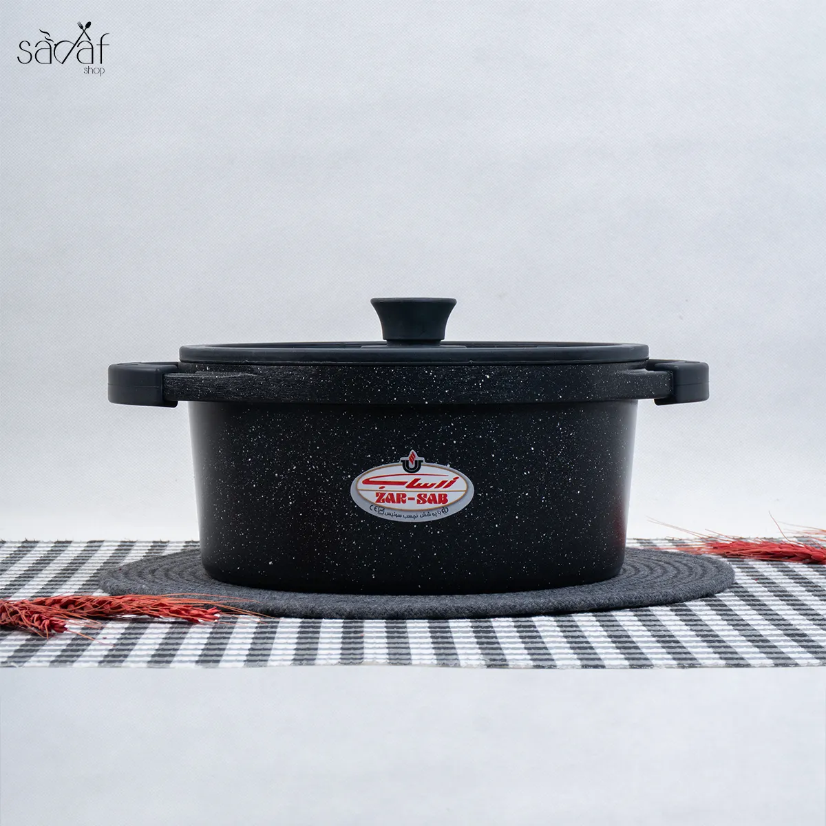 ویژگی های قابلمه دو دسته درب دار ۲۴ سانت مونارک پلاس مشکی زرساب