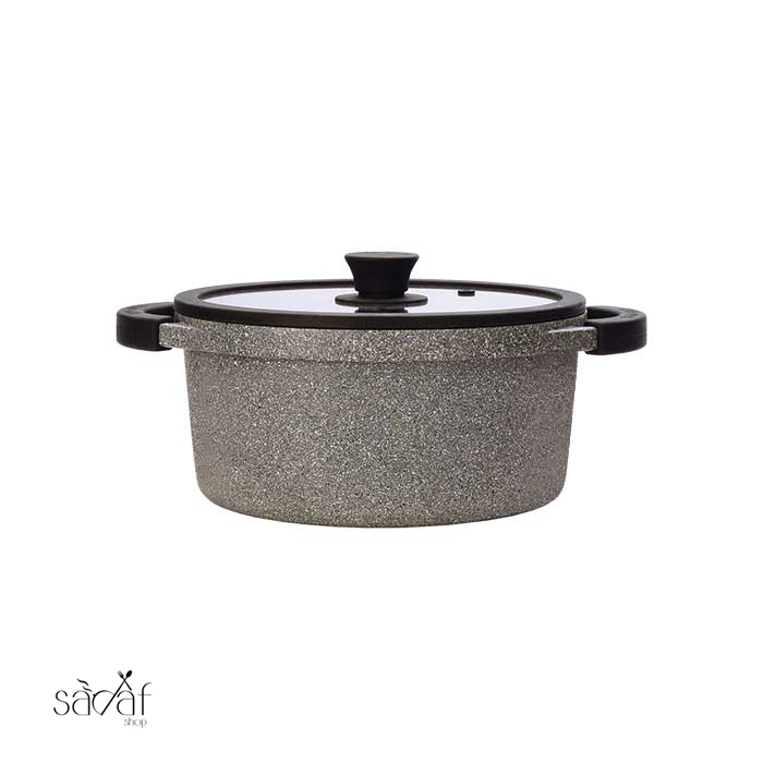 بدنه این محصول از جنس آلومینیوم و به روش دایکاست ( اصطلاحاٌ چدنی ) تولید و طراحی شده است. کف این ظرف به گونه ای طراحی شده که حرارت را به صورت یکنواخت منتقل خواهد کرد. جنس دستگیره های این ظرف از جنس بدنه آلومینیومی بوده و جهت جلوگیری از انتقال حرارت آن به دست با قطعات سیلیکونی پوشیده شده است. ( این دستگیره ها قابلیت جدا شدن را دارند ) درب این محصول از جنس شیشه تخت به همراه سوپاپ خروج هوا و دارای زه سیلیکونی بوده و دکمه این محصول نیز از جنس سیلیکون مشابه دستگیره ها طراحی شده است. لازم به ذکر است این محصول را می توان ( بدون درب ) داخل فر نیز استفاده کرد.