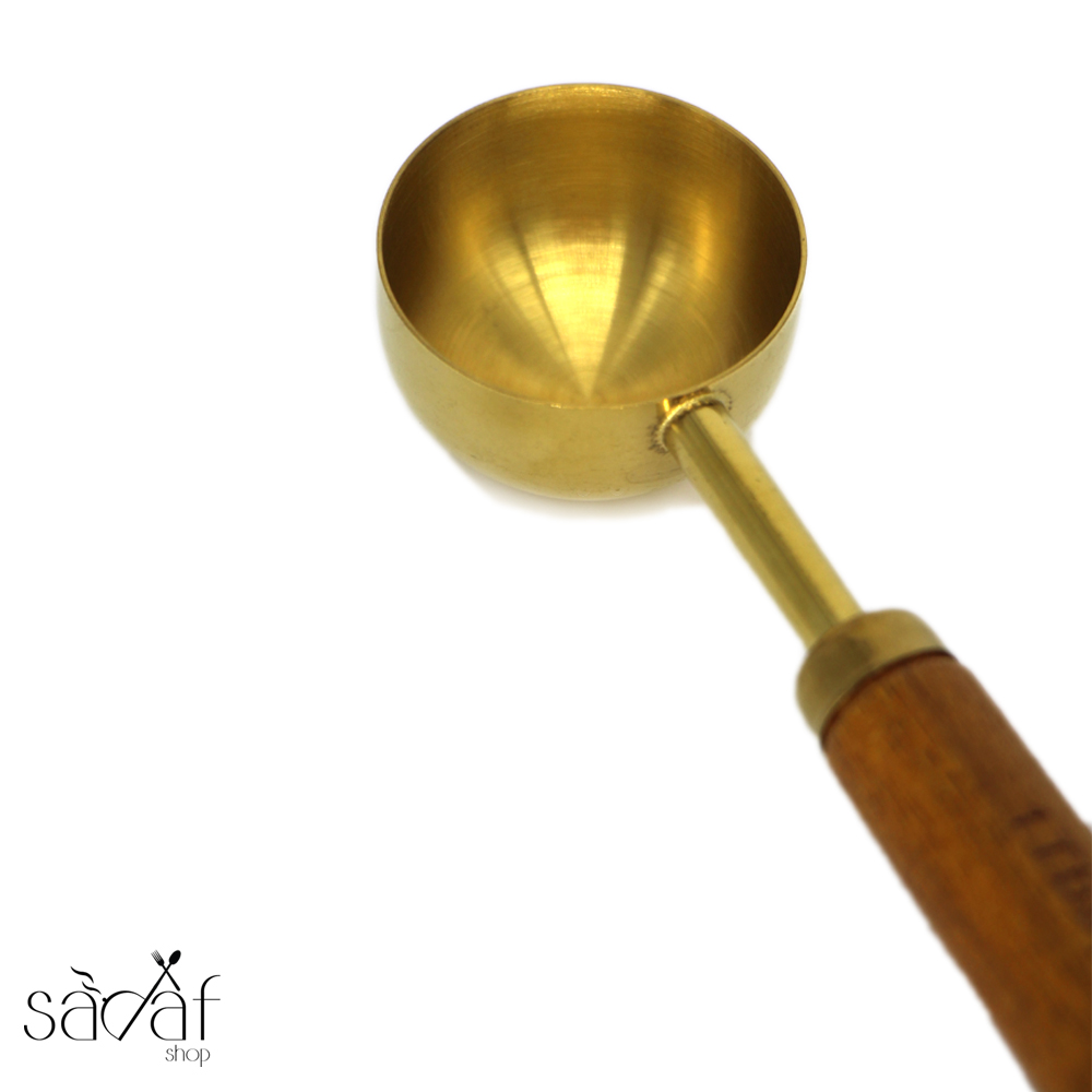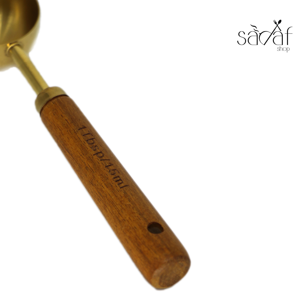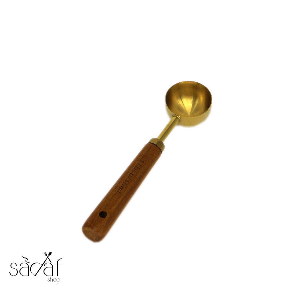 قاشق/ پیمانه ۱۵ میل طلایی دسته چوبی
