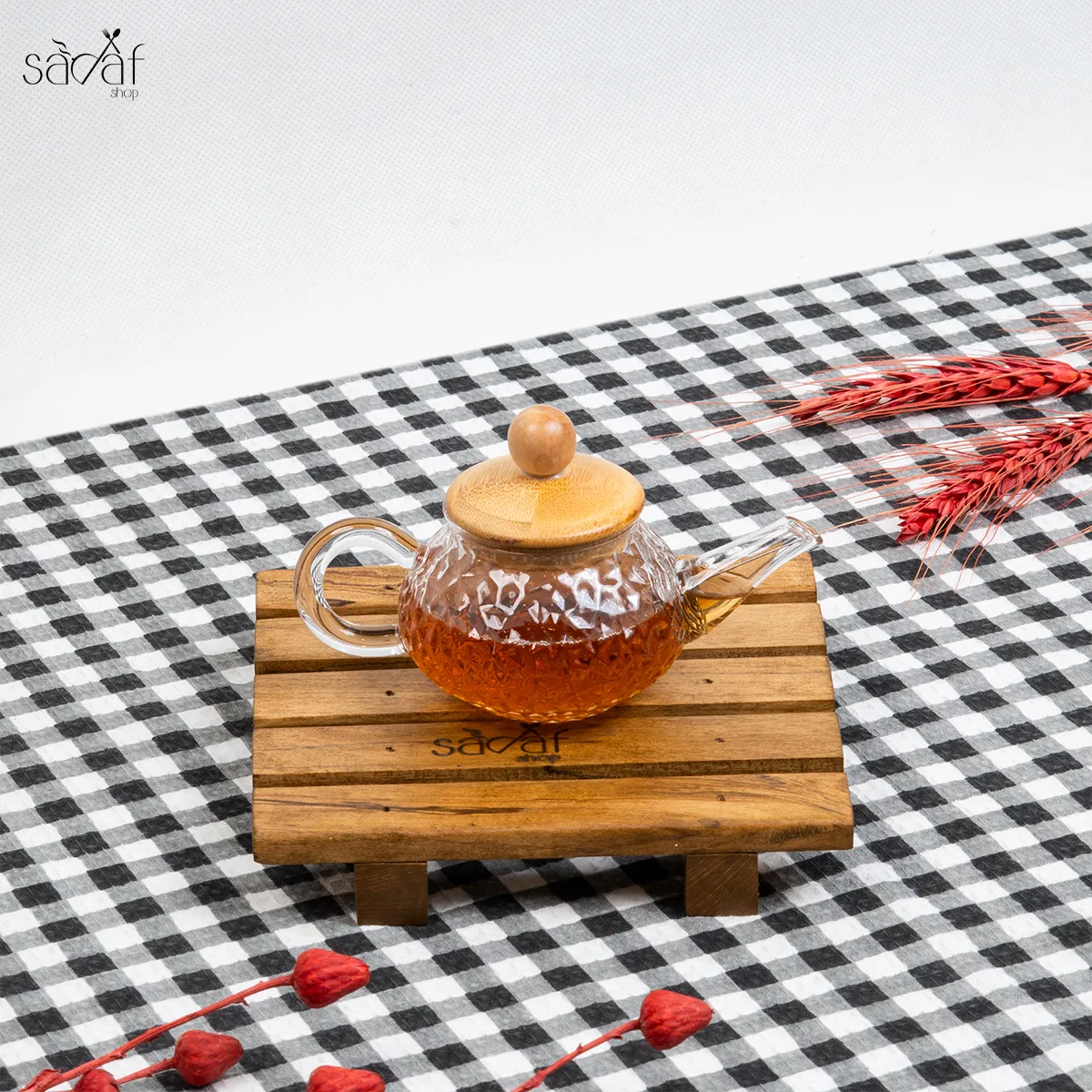 قوری زعفران تمام پیرکس درب چوبی ۱۰۰ سی سی