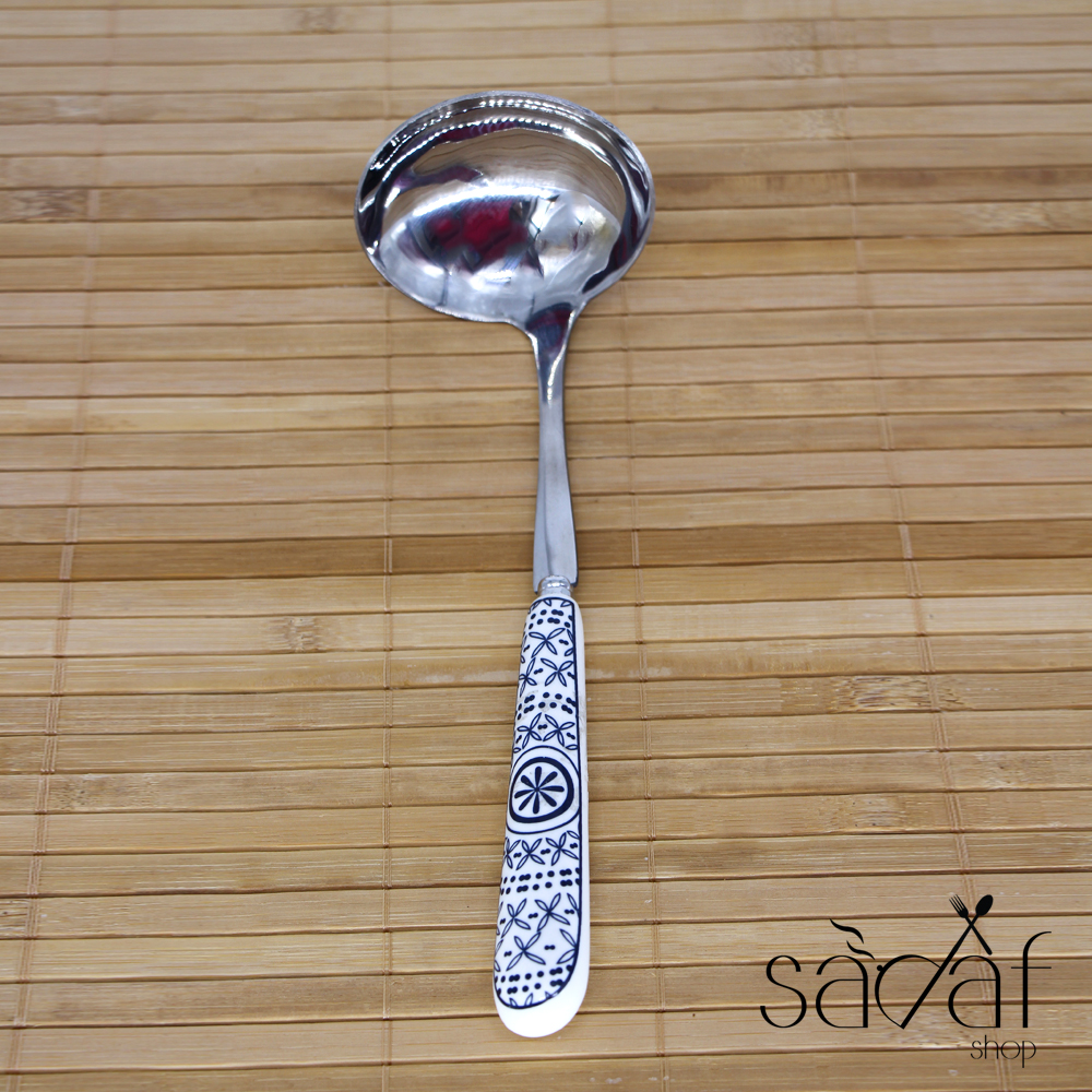 ملاقه دسته سرامیکی مناسب برای پذیرایی های شماست که از استیل ضد زنگ و ضخیم بر روی دو طرف دسته ی این ملاقه با پوشش سرامیکی براق و با کیفیت کاور شده تا هم زیبا و هم خوش دست باشد. رنگ این دسته ها کاملا ثابت است.