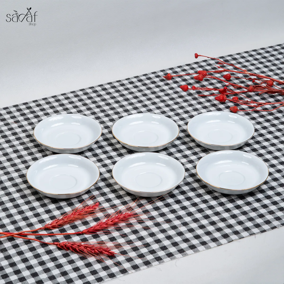 نعلبکی سفید دور طلایی لورین ( دست ۶ عددی)