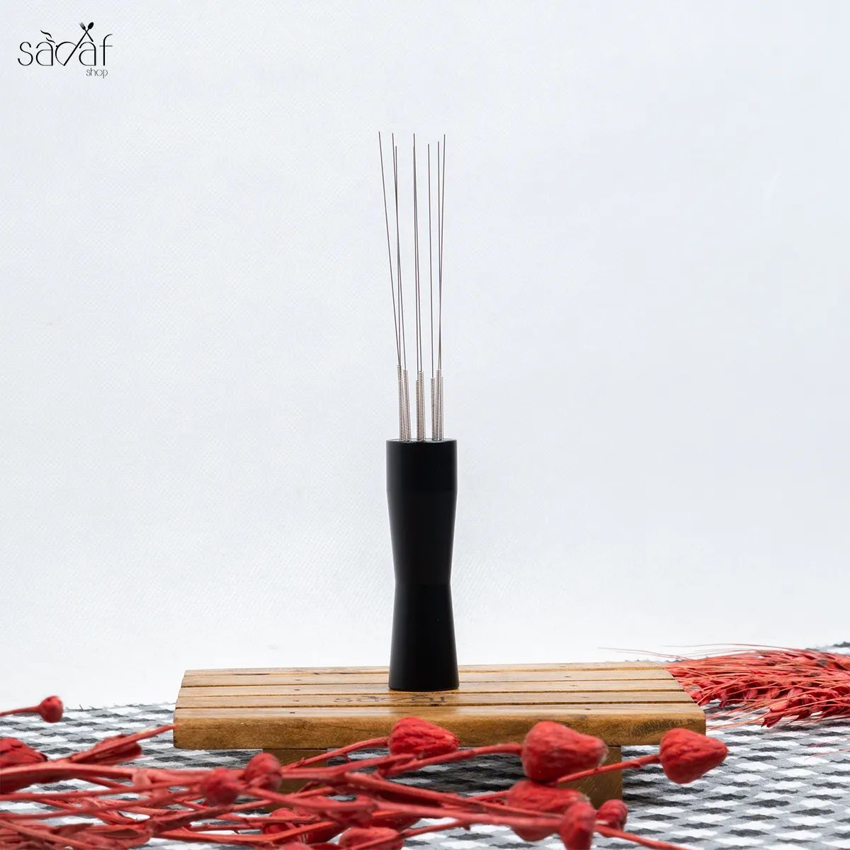 نیدل وسیله ای می باشد که برای بسترسازی و پخش و توزیع پودر قهوه در پرتافیلتر استفاده می شود. این وسیله یک ابزار کاربردی برای باز کردن پودرهای قهوه اسپرسو به هم چسبیده میباشد. جنس این وسیله فلز رنگ شده مشکی می باشد که کیفییت بسیار خوبی دارد.