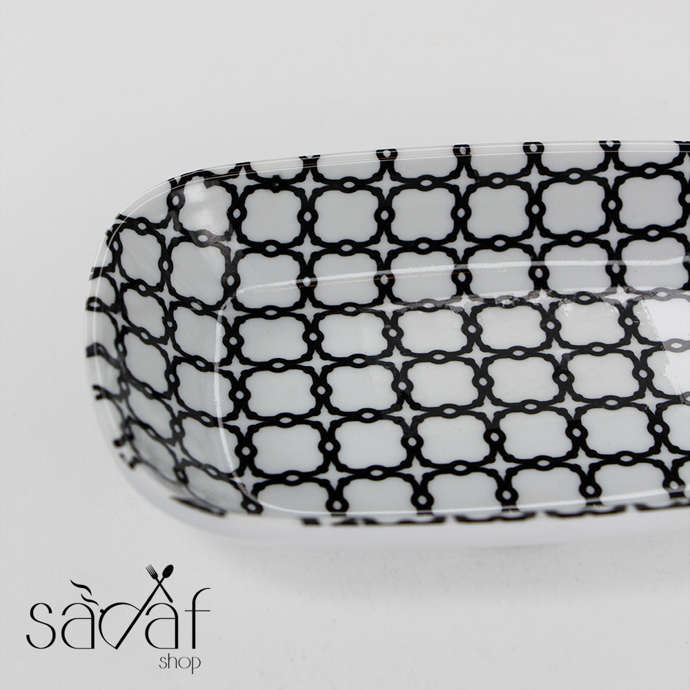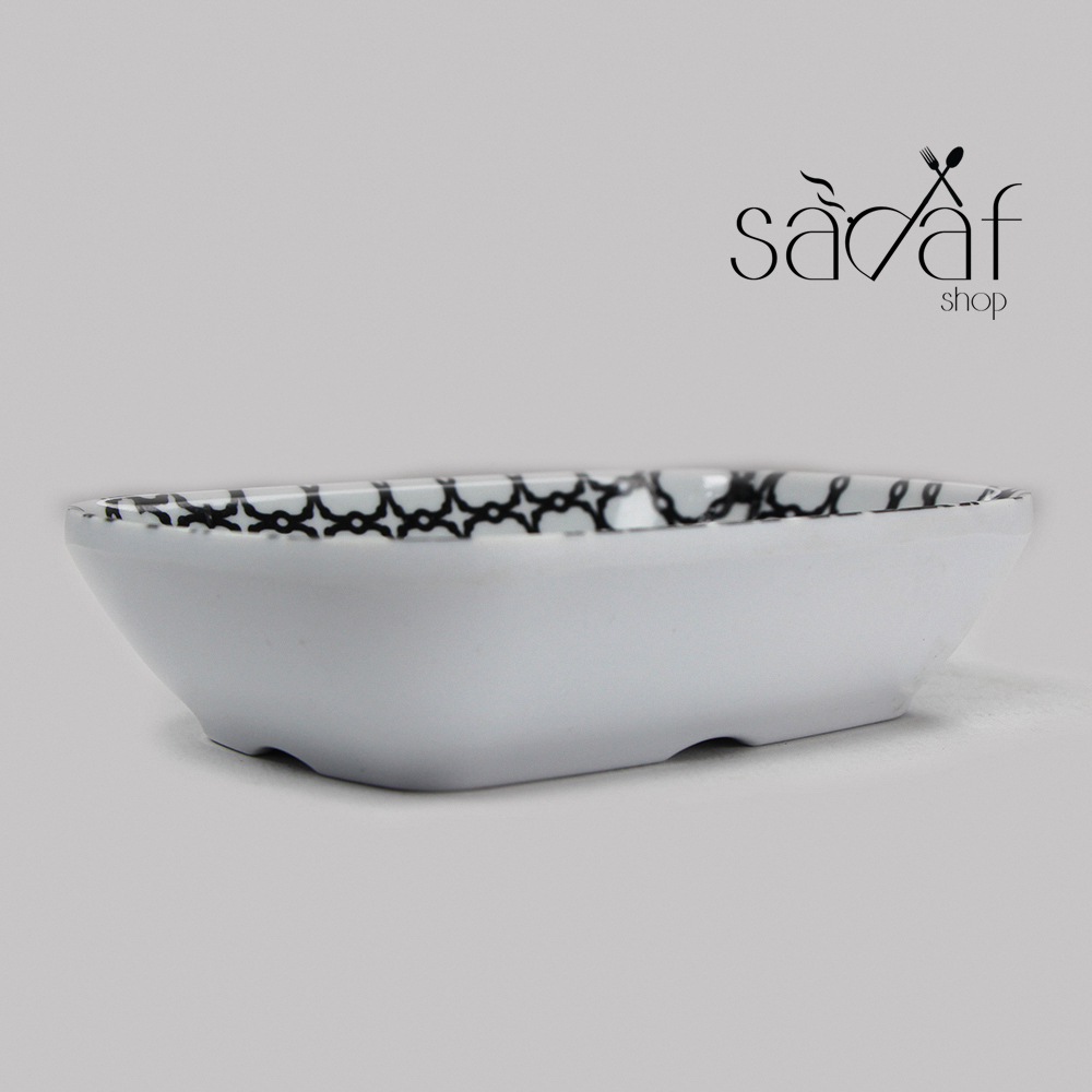 پیاله سرو مزه مستطیل کوچک سفید مشکی ملامین ۱۲/۸ امارات