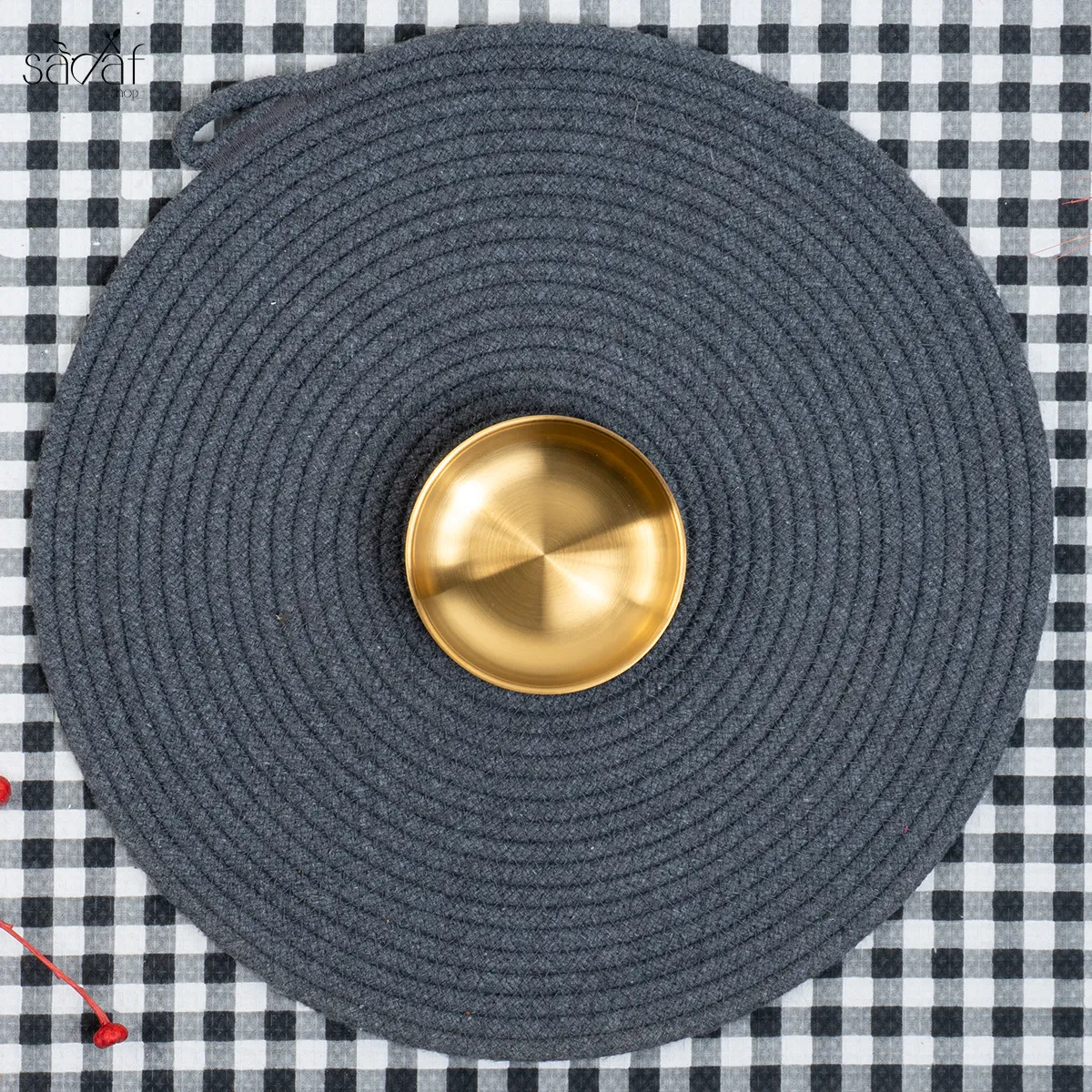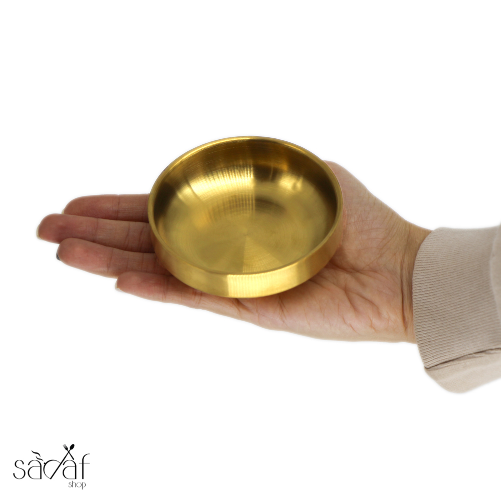 پیاله مزه گرد تخت لبه دار ۹ سانت استیل طلایی