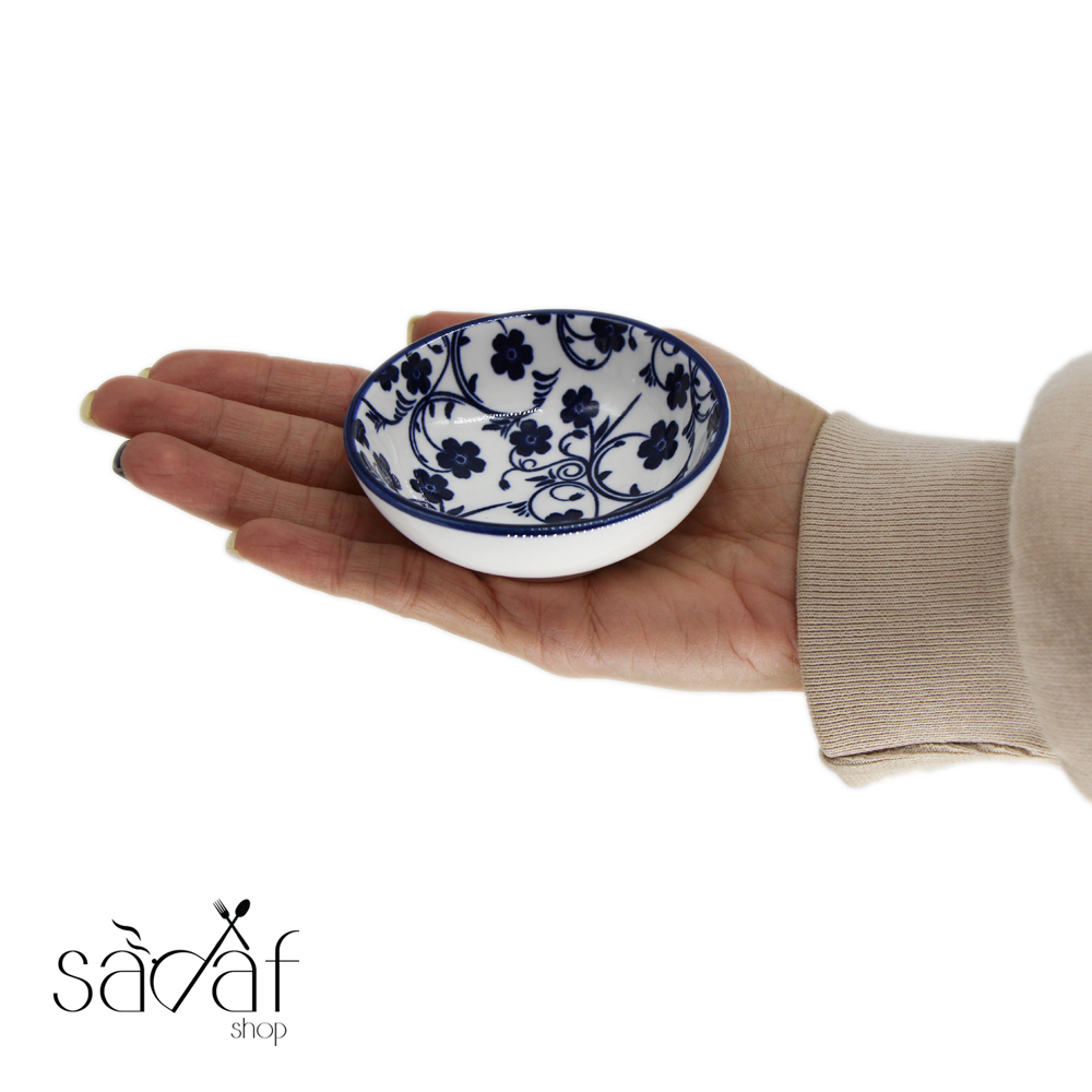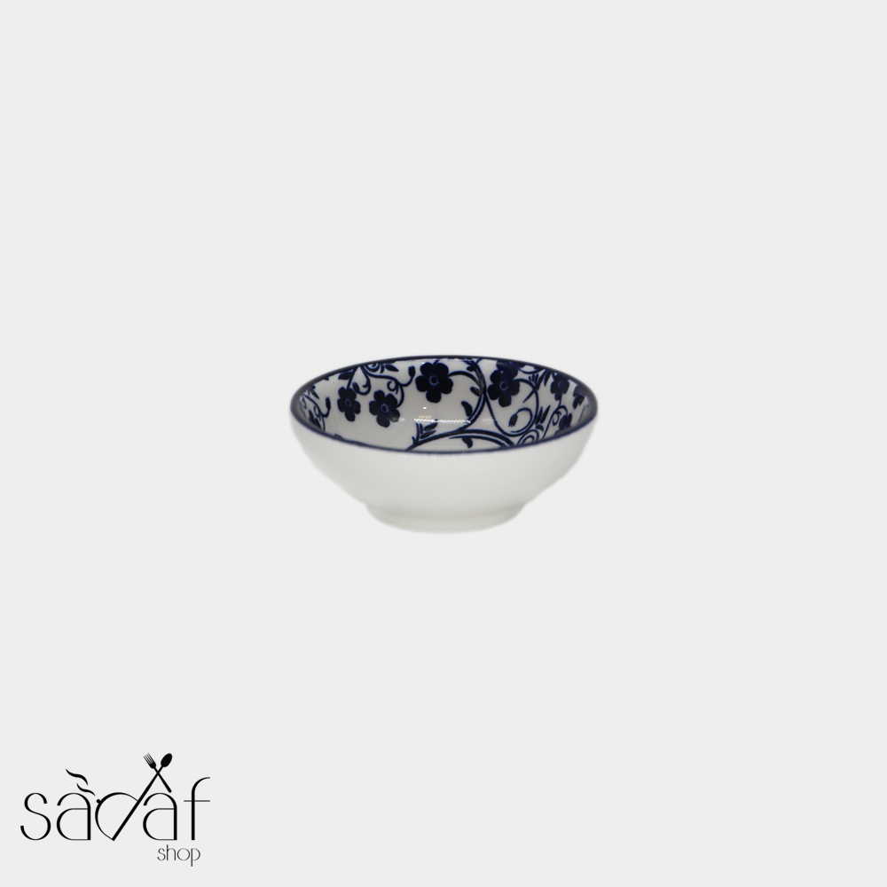 پیاله مزه گرد سرامیکی ۶ سانت طرح گل آبی دنی هوم