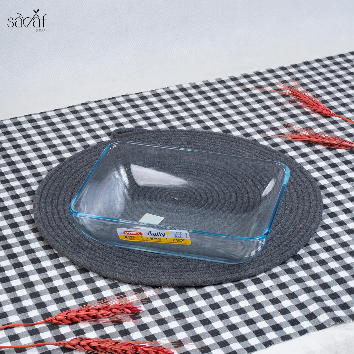 ظروف پیرکس نسل جدیدی از ظروف شیشه ای است با این تفاوت که نسبت به شیشه های معمولی، در برابر شوک های حرارتی از مقاومت بالایی برخوردار است. برای استفاده روی شعله مستقیم بهتر است از شعله پخش کن استفاده کنید.مناسب پخت و سرو انواع خورشت، مرغ، کیک و دسر و… است.