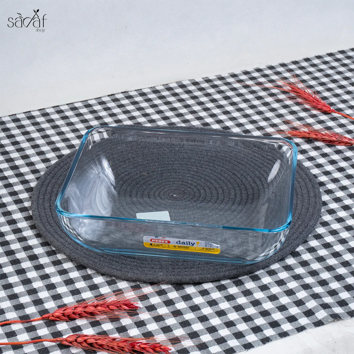 ظروف پیرکس نسل جدیدی از ظروف شیشه ای است با این تفاوت که نسبت به شیشه های معمولی، در برابر شوک های حرارتی از مقاومت بالایی برخوردار است. برای استفاده روی شعله مستقیم بهتر است از شعله پخش کن استفاده کنید.مناسب پخت و سرو انواع خورشت، مرغ، کیک و دسر و… است.