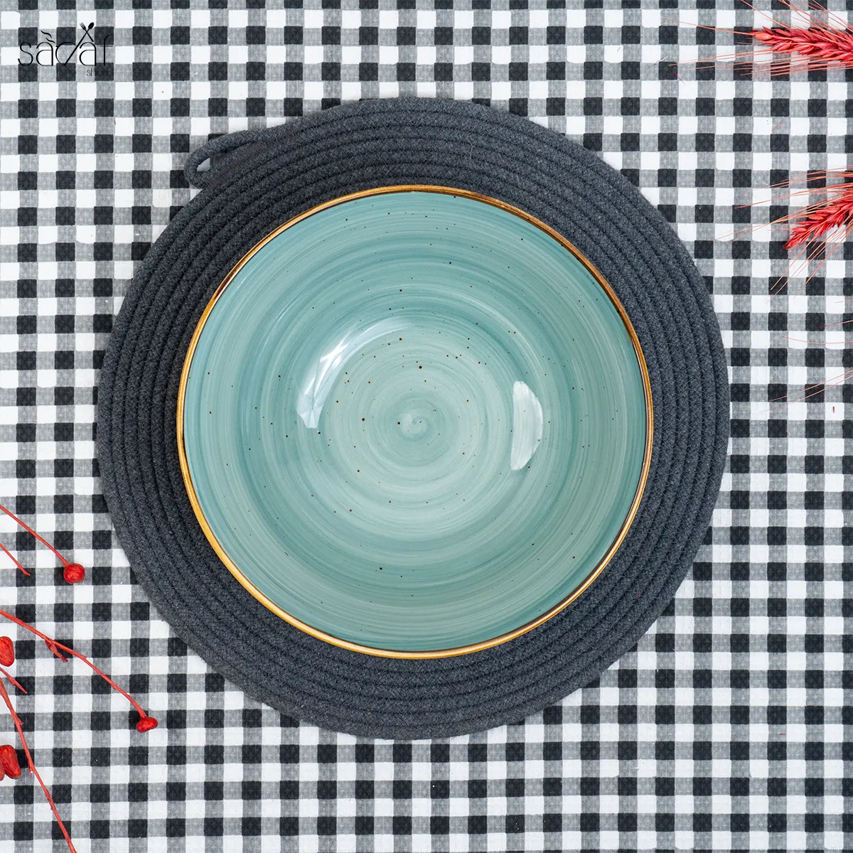 کاسه سرو گرد ۲۳ سانت سرامیک سبز روستیک دنی هوم