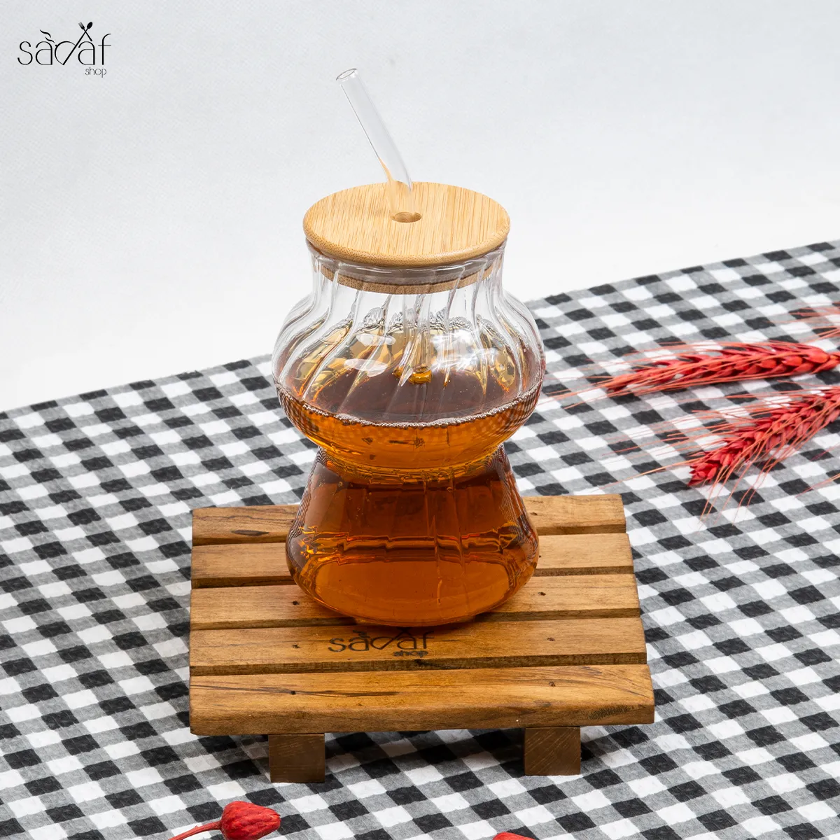 لیوان اسموتی پیرکس شیاردار درب بامبو