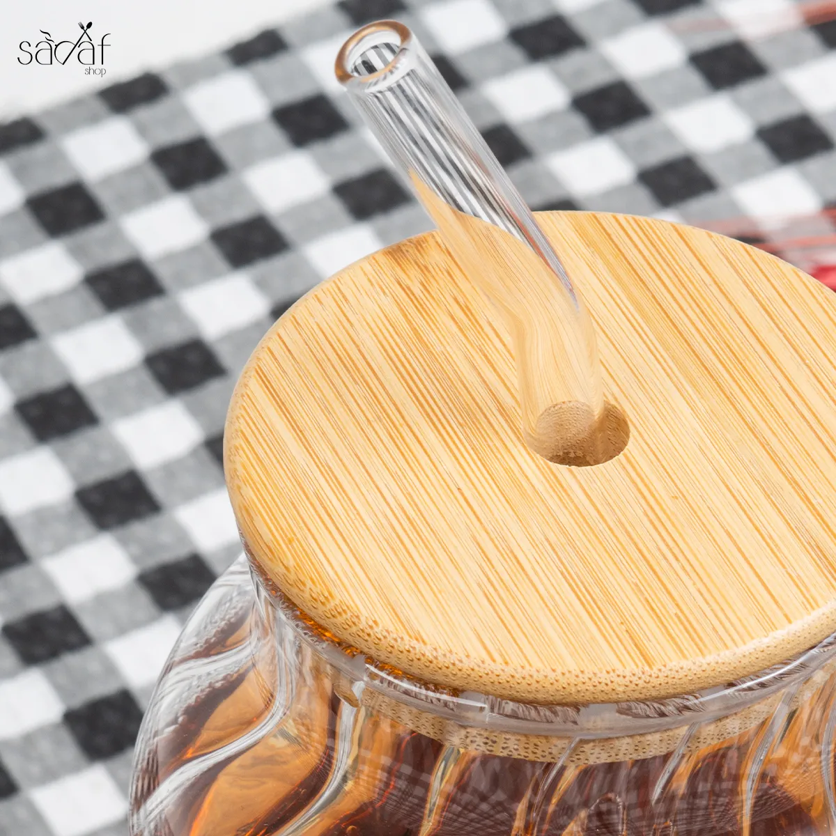 لیوان اسموتی پیرکس شیاردار درب بامبو (یک عددی)